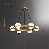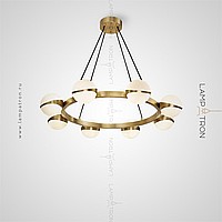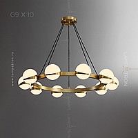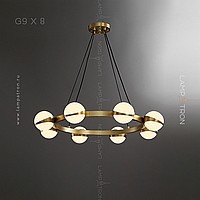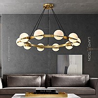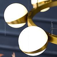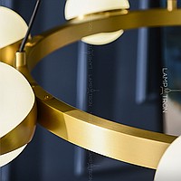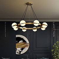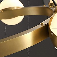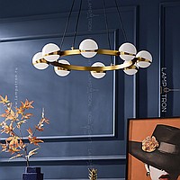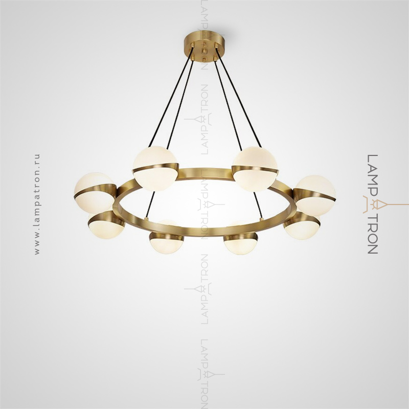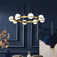 A series of ring chandeliers with spherical glasses of glass in bronze metal holders