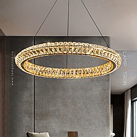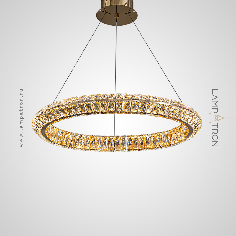 Ring LED chandelier with polyhedral rectangular diffusers made of K9 crystal