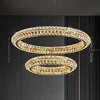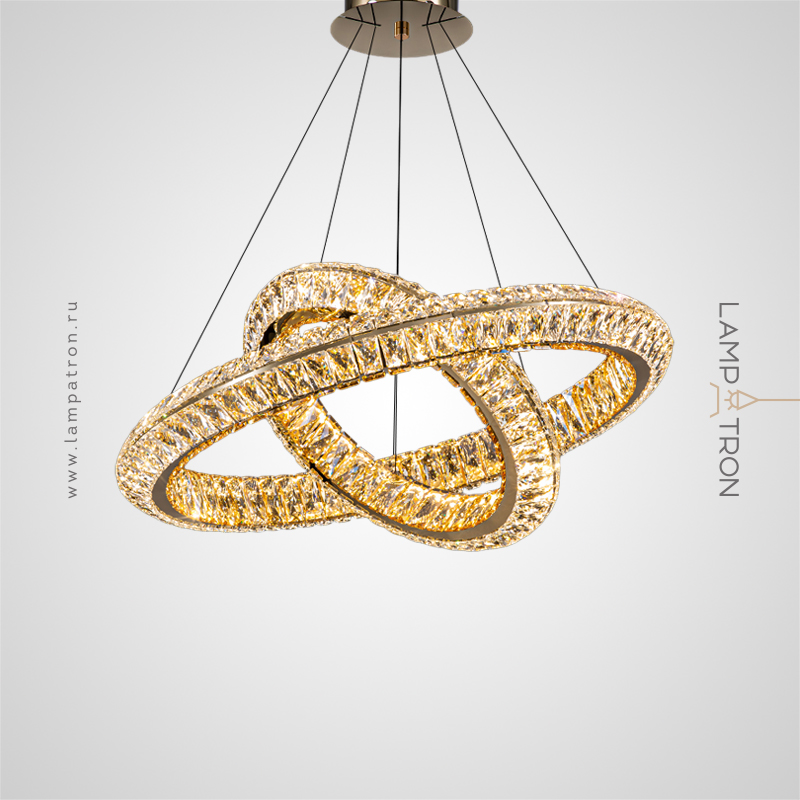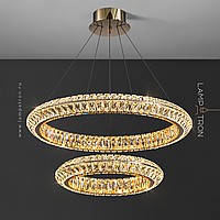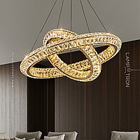 LED chandelier in the form of a combination of two three-dimensional rings made of rectangular crystal stones