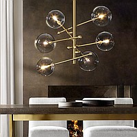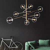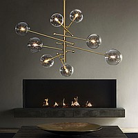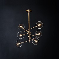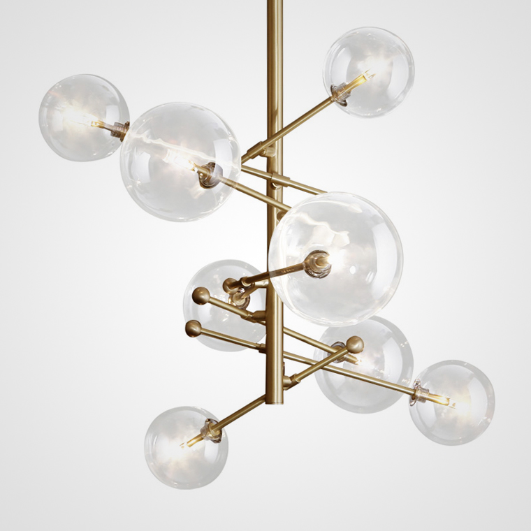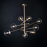 Designer chandelier in the style of postmodern with glass ball plafones on moving rods