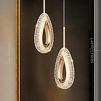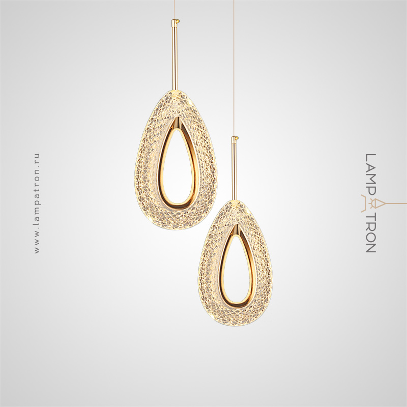 Pendant LED luminaire with a teardrop-shaped embossed body