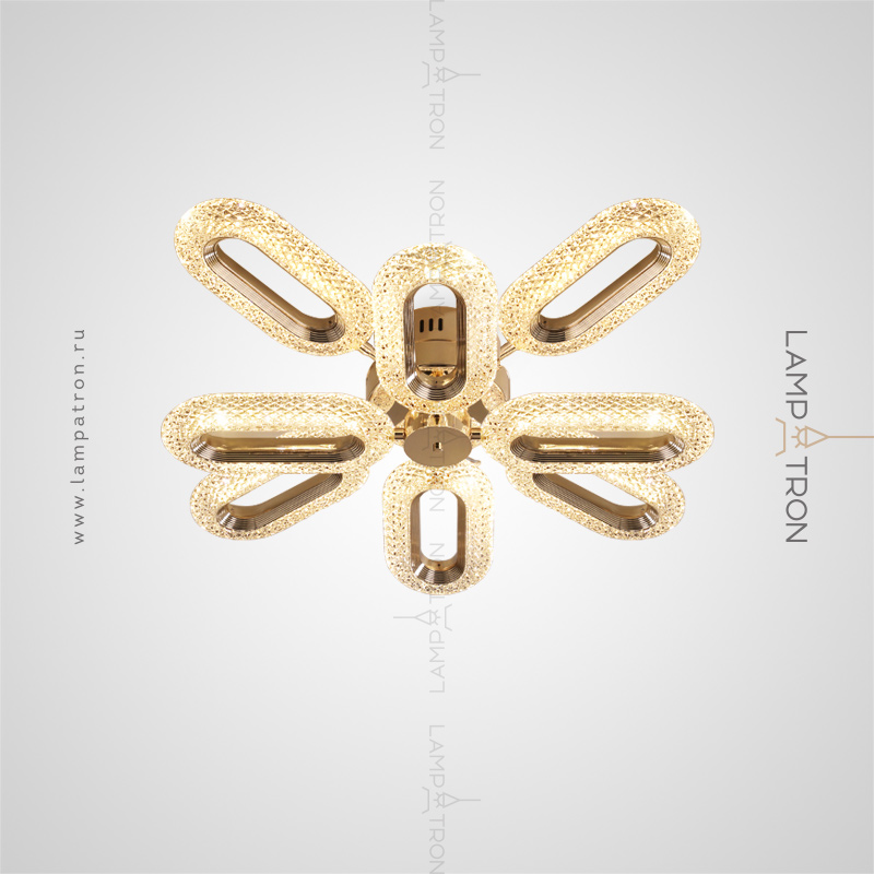 A series of ceiling LED chandeliers with ring -shaped relief ceiling