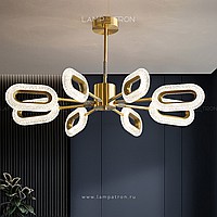 A series of LED chandeliers on a radial frame with ring -shaped relief ceiling