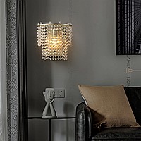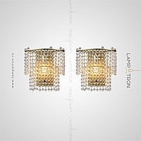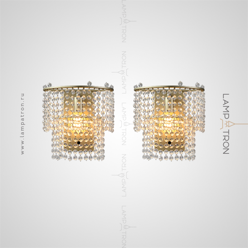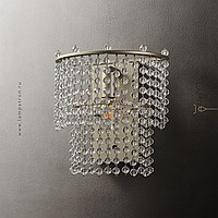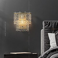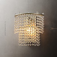 Designer wall lamp with two-tier lampshade made of pendants with crystal beads