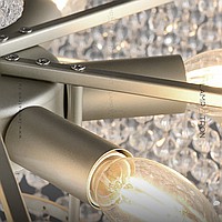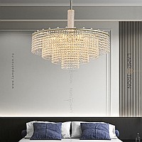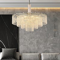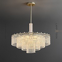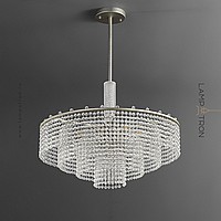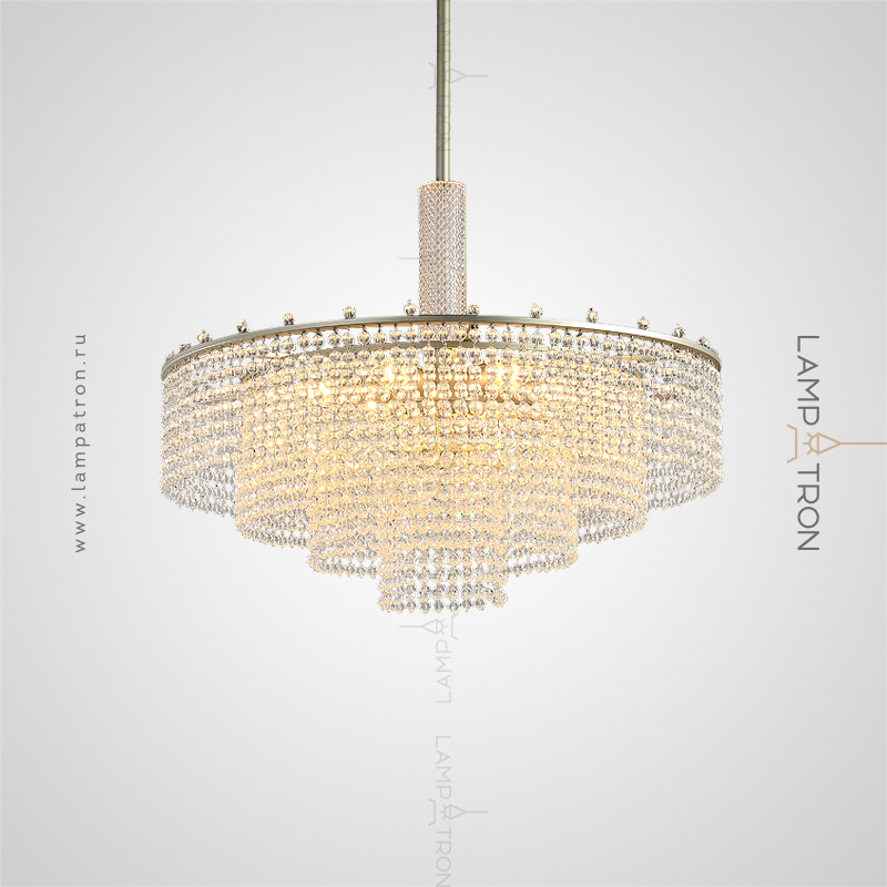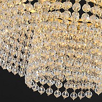 Designer chandelier on a ring frame with a cascading lampshade made of pendants with crystal beads