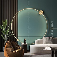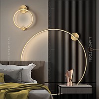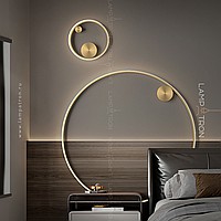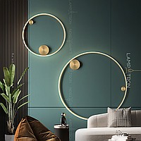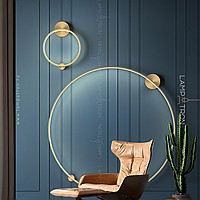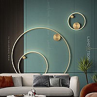 A series of wall lamps in the form of metal rings of different diameters with an internal LED lighting