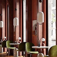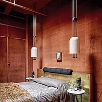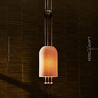 Designer lamp on racks with a dome shade made of frosted corrugated glass