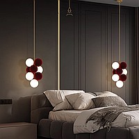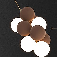 A series of pendant lamps with a combination of spherical milky glass shades and decorative flocked coloured balls