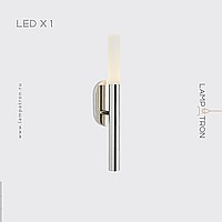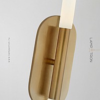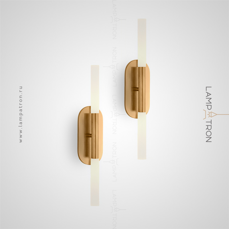 A series of wall lamps with a matte cylindrical diffuser on a vertical horn