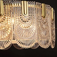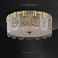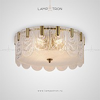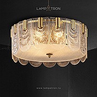 Ceiling chandelier with a lampshade of openwork glass plates of a rounded shape