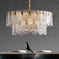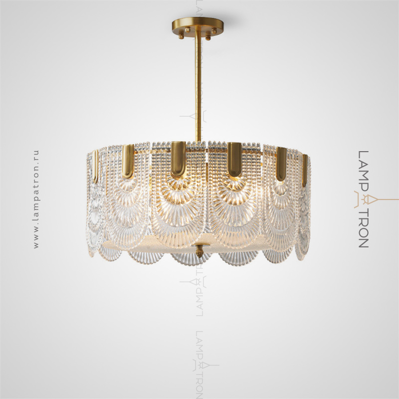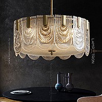 A series of chandeliers with lampshades made of rounded openwork glass plates