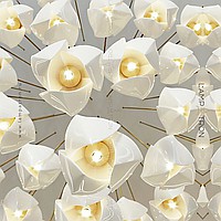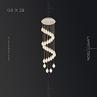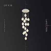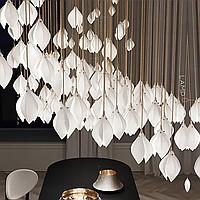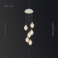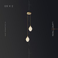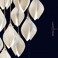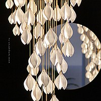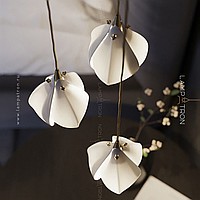 Ready-made combination of pendant lamps with teardrop-shaped shades made of jade porcelain in the shape of white buds