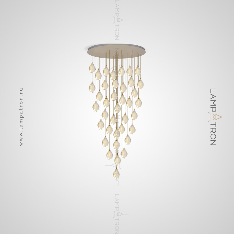 Ready-made combination of pendant lamps with teardrop-shaped shades made of jade porcelain in the shape of white buds