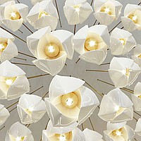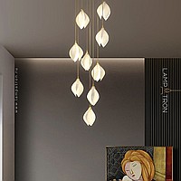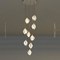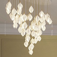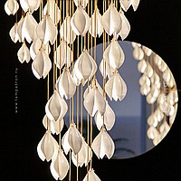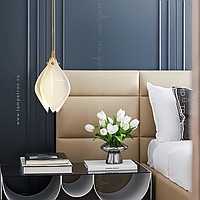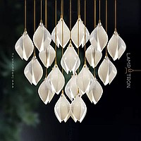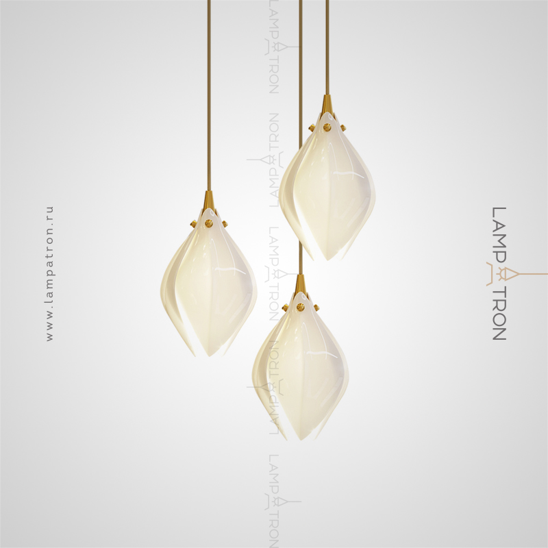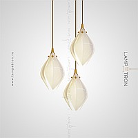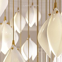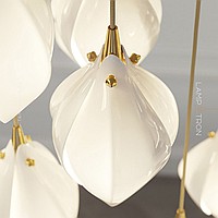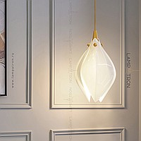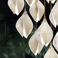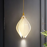 Designer pendant lamp with a teardrop-shaped shade made of jade porcelain in the shape of a white bud