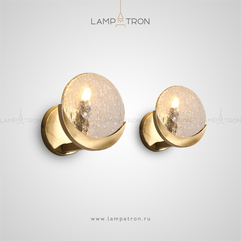 Sconces with a disk -shaped scatter of craquelled glass in a metal frame
