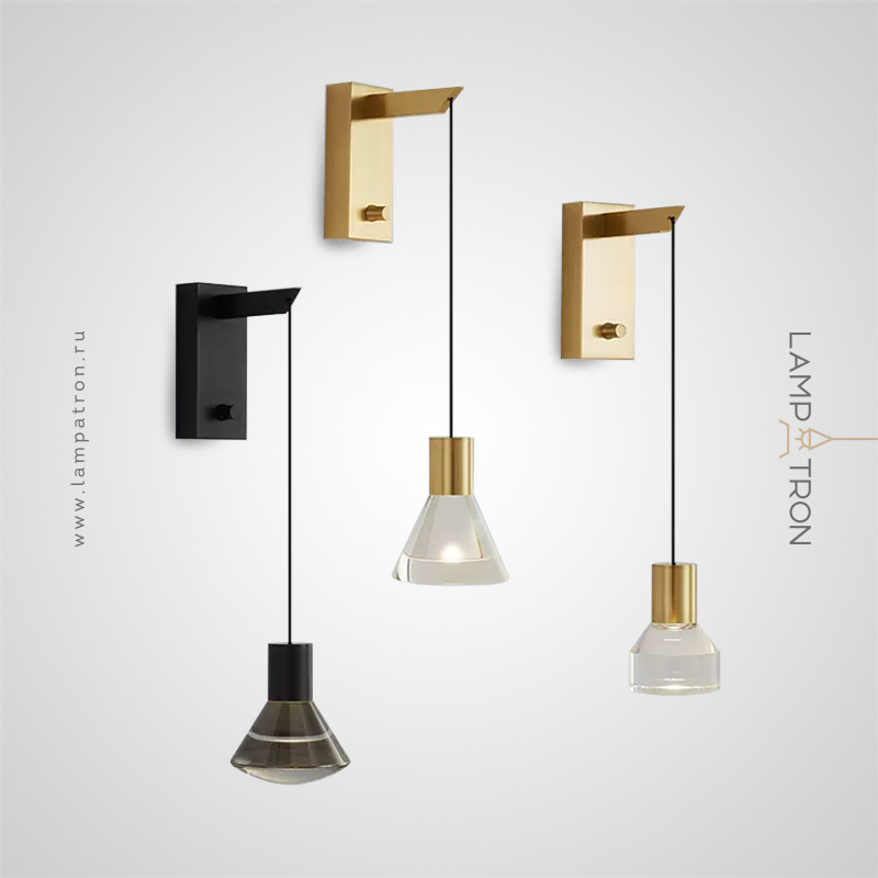 A series of wall lamps with diffusers made of solid acrylic in cylindrical and conical shapes