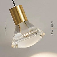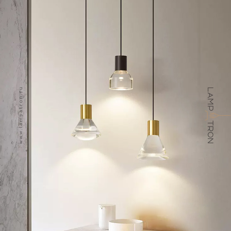 A series of pendant LED luminaires with diffusers made of solid acrylic in cylindrical and conical shapes