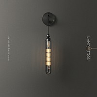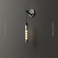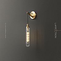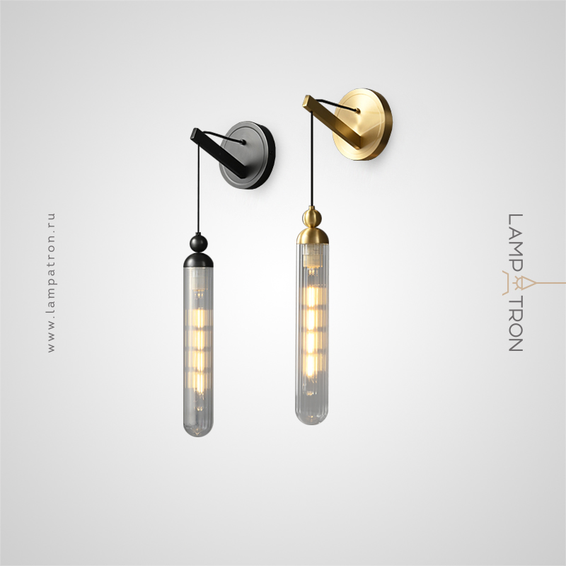 A series of wall lamps with a cylindrical diffuser made of embossed glass in a brass housing with a clip
