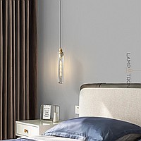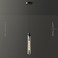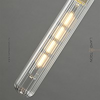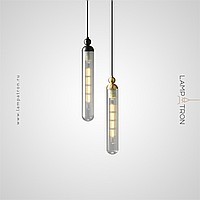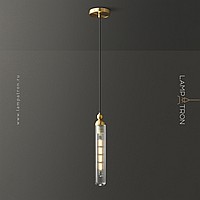 A series of pendant lamps with a cylindrical diffuser made of embossed glass in a brass case with a clip