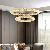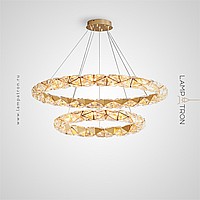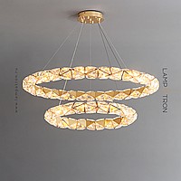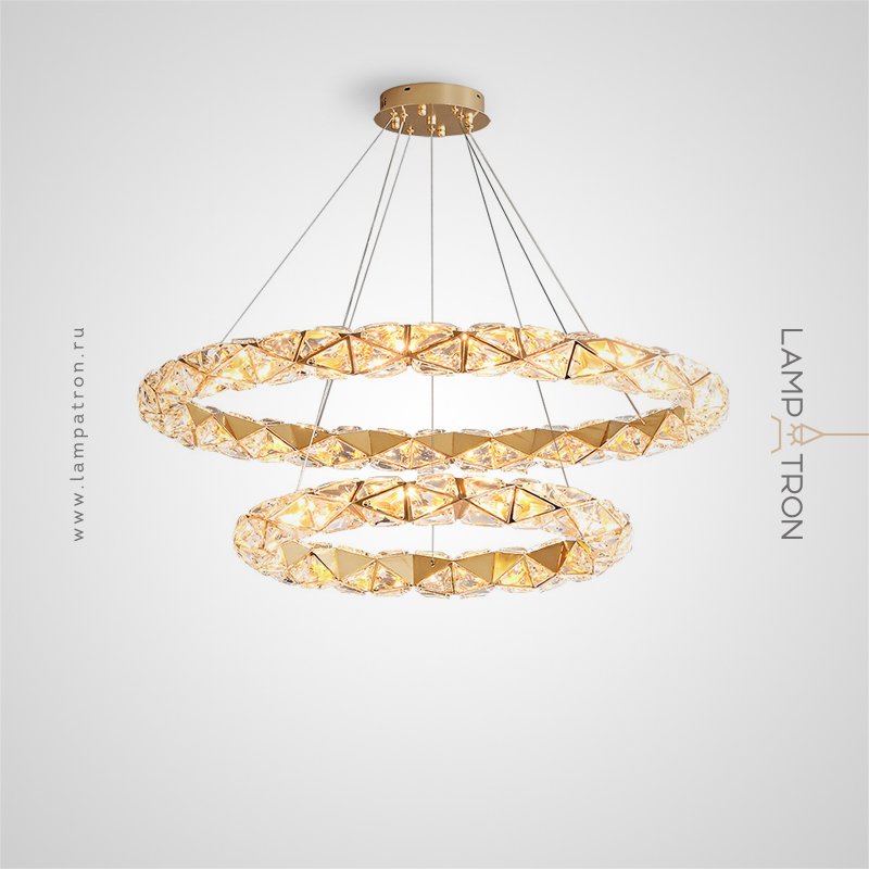 A series of LED chandeliers in the form of a combination of two rings with triangular crystal diffusers