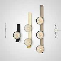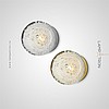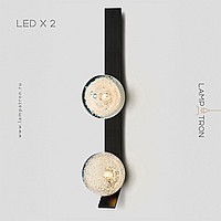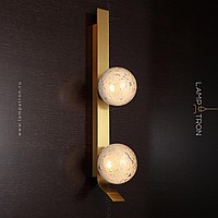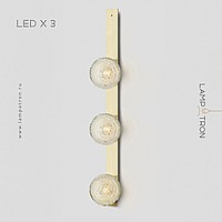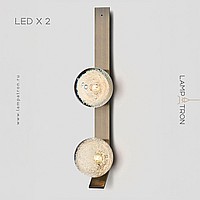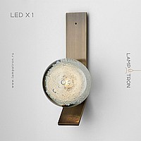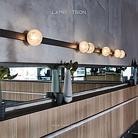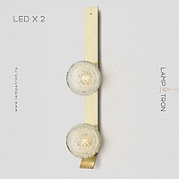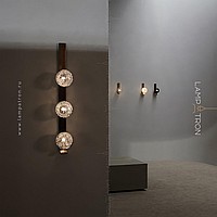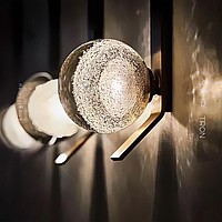 A series of LED sconces on a rectangular mount with spherical diffusers made of glass with an air bubble effect