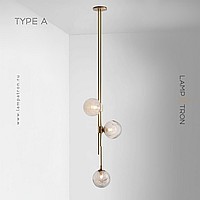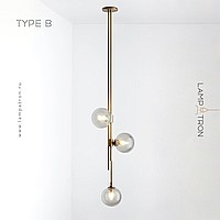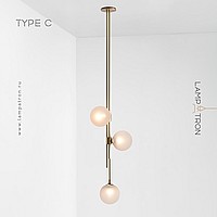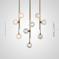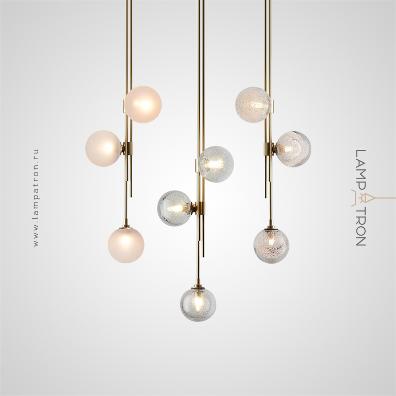 A series of LED luminaires with three spherical diffusers made of frosted glass and with an air bubble effect