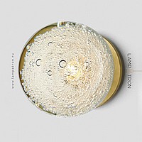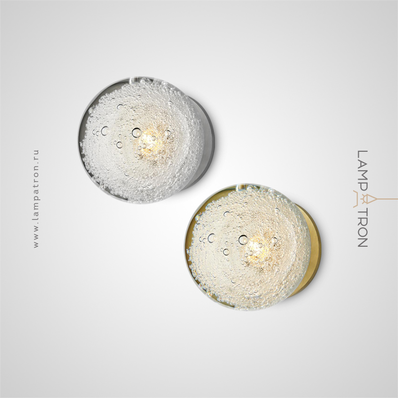 A series of LED sconces with a spherical diffuser made of handmade glass with an air bubble effect