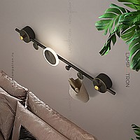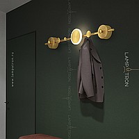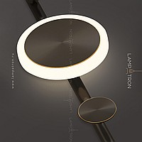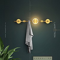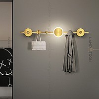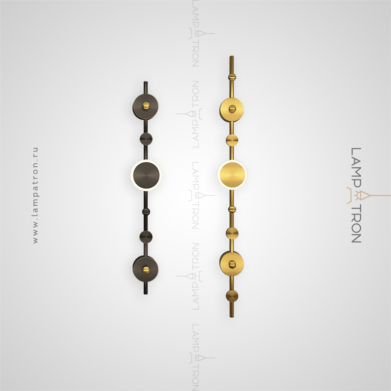 A series of wall lamps in the form of a composition of metal disks on a vertical rack