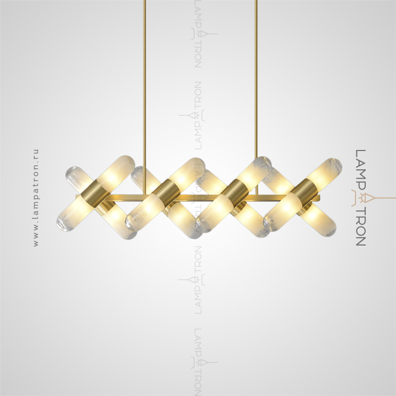 A series of rack lamps with double cross -circuits of white glass with an ice effect