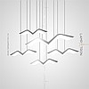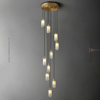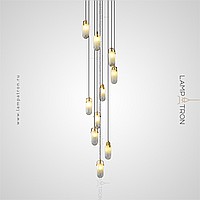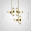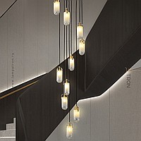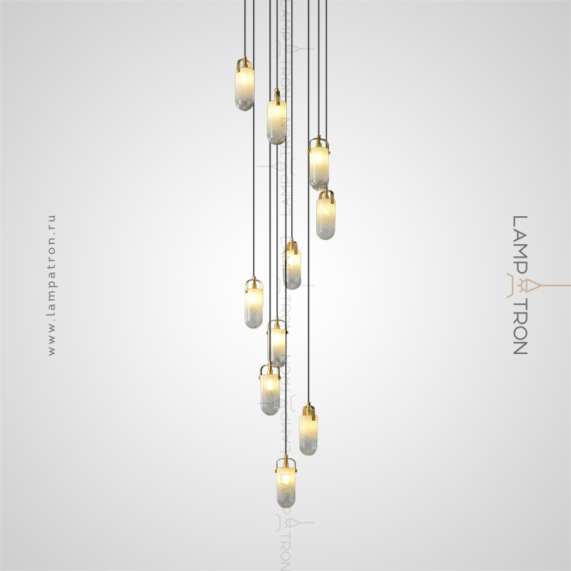 The finished combination of suspended lamps with cylindrical white glass with ice effect