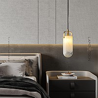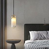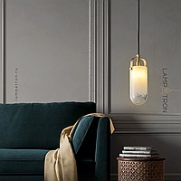 A designed lamp with a white glass plafon of a cylindrical shape with an ice effect.
