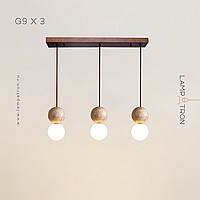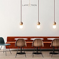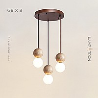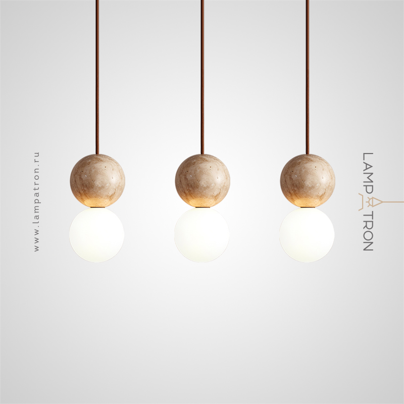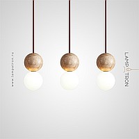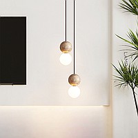 Ready-made combination of pendant lamps with spherical glass shades and stone spheres