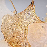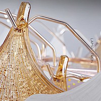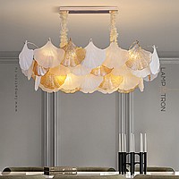 In-line luminaire with white and amber frosted glass diffusers with natural motifs