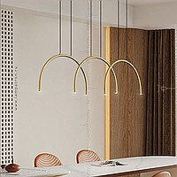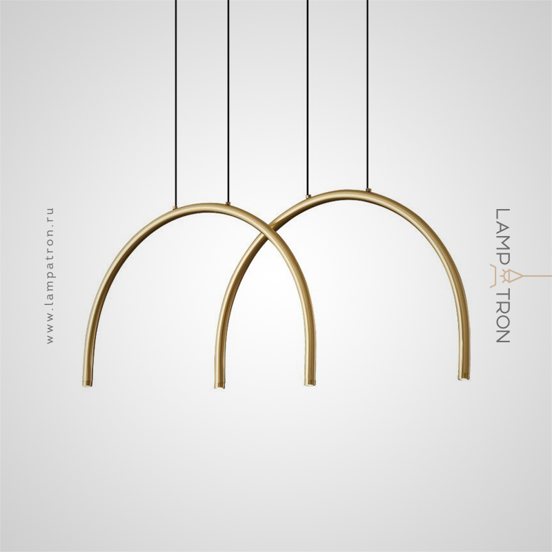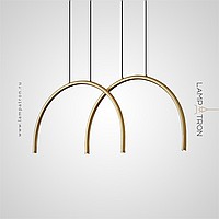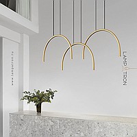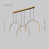 Ready-made combination of LED pendant luminaires with point sources on a brass C-shaped body