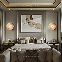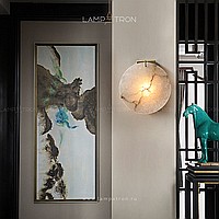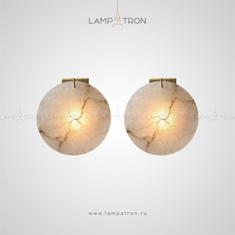 Wall lamp with a suspended scenter of marble in the shape of a disk