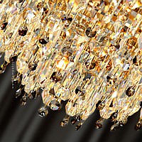 A series of two-tier rack lamps with almond-shaped diffusers made of transparent and smoky crystal