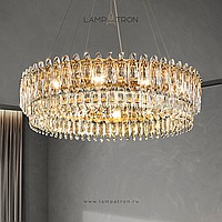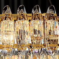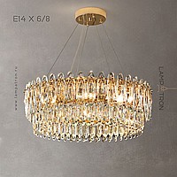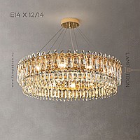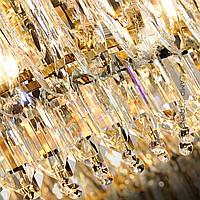 A series of cascading chandeliers on an annular body with almond-shaped diffusers made of K9 crystal