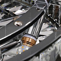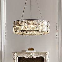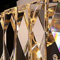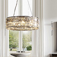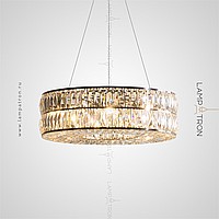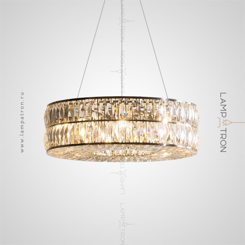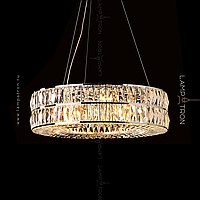 Designer chandelier on a ring frame with a two -row lampshade of rectangular crystal plates