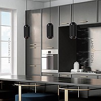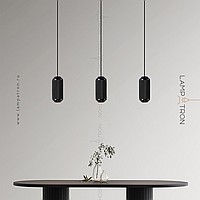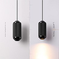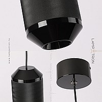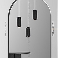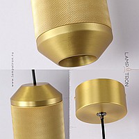 A series of suspended LED lamps with a cylindrical ceiling with a mesh relief and glossy rim