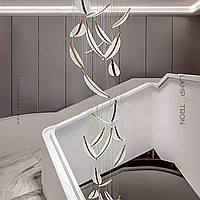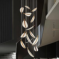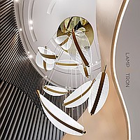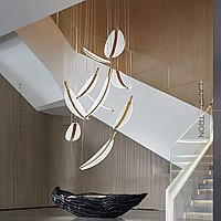 A series of pendant lamps in the form of transparent stylized leaves with LED lighting
