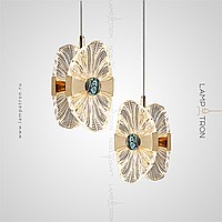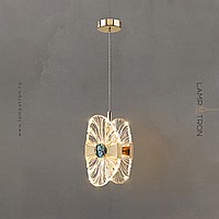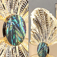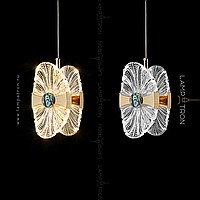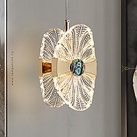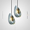 Suspended LED lamp with a transparent openwork ceiling, stylized under a flower with a pearl core