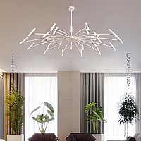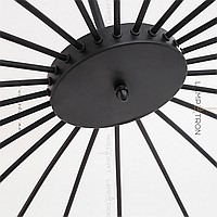 Designer chandelier on a radial frame with narrow rotary ceiling.