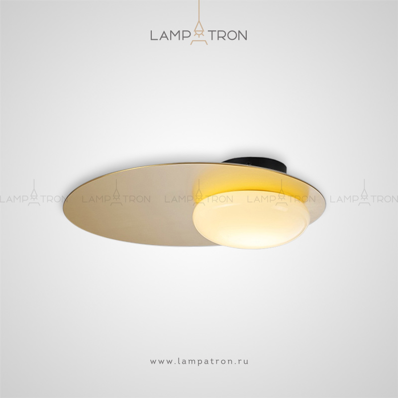 Ceiling lamp with a glass ceiling on a brass plane