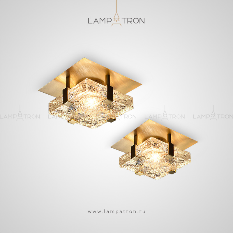 A rectangular LED ceiling lamp with a relief ceiling of glass in metal clamps