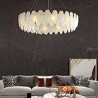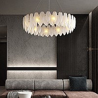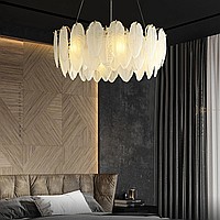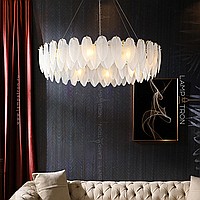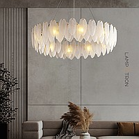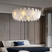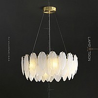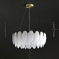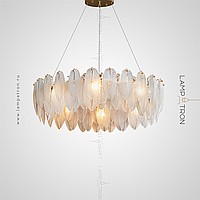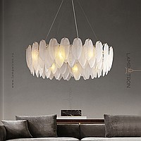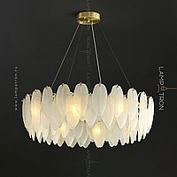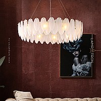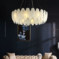A series of chandeliers with a lampshade in the form of a composition of glass feathers