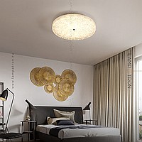 Ceiling lamp of a round and square shape with a relief ceiling from crystal