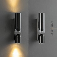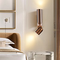 A series of wall lamps with a glass diffuser and a swivel spot on a rectangular mount
