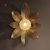 A series of Lotus lamps with lampshades of brass 3 different shapes and textured glass ceiling. Use the possibility of combinations of these lamps when using a group to enhance the aesthetic effect. And where to place them on the ceiling, wall or in both places at once — depends on your imagination!