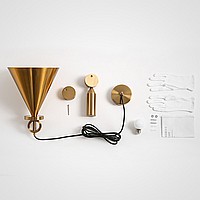 A unique brass lamp on a block wired suspension with a sinker-fingers.