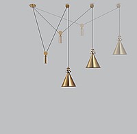 An unusual and at the same time simple block structure — for those who really are looking for something sophisticated and unusual. The weight of all elements of the suspension is designed so that the wires are stretched enough to create clear and even geometric lines without unnecessary bends and irregularities. Add to this the possibility of adjusting the height of the location of the ceiling!!! Especially good in Scandinavian interiors and spaces in the style of minimum. Hence the breadth of functional settings from the bedside zone to the kitchen, as well as from the design of the restaurant sphere to fashionable show rooms.